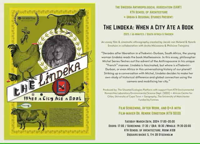 The Lindeka: When a City ate a Book adresserar miljökrisen genom de aktiva kvarlevorna av koloniseringen. Filmen är skapad av Jacob von Heland och Henrik Ernstson i samarbete med Anita Mkizwana and Philisiwe Twinjstra.