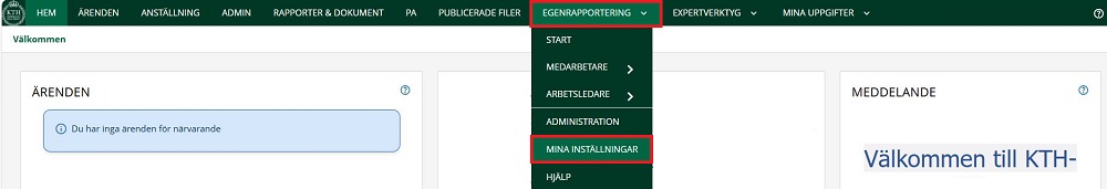 1. Klicka på “Egenrapportering” följt av “Mina inställningar”