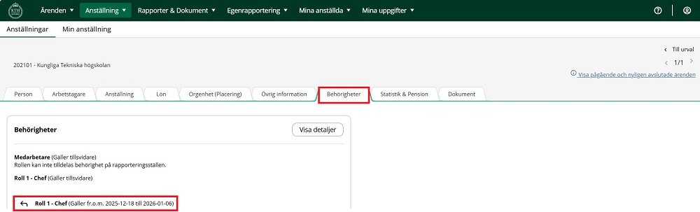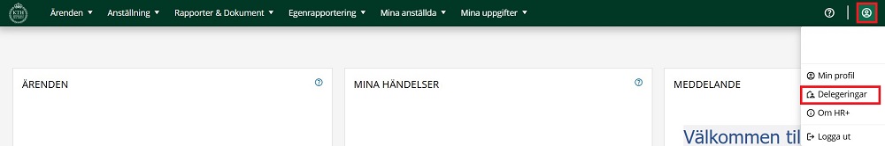 Du kan delegera din roll i KTH-HR om det är så att du är borta tillfälligt, du kan då styra vilken roll och organisation personen ska ha behörighet till samt under vilken tidsperiod. Du som chef kan delegera din roll till en annan chef.