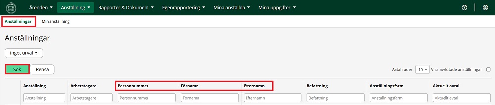 1. Håll muspekaren över “Anställning” och klicka på “Anställningar”