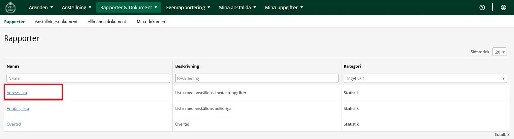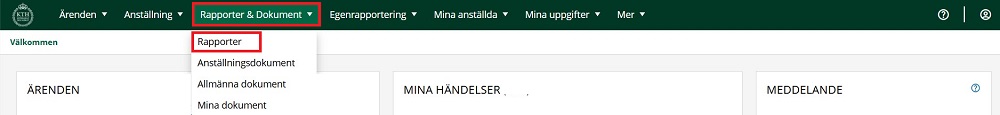 1. Håll muspekaren över “Rapporter & Dokument” och välj “Rapporter”