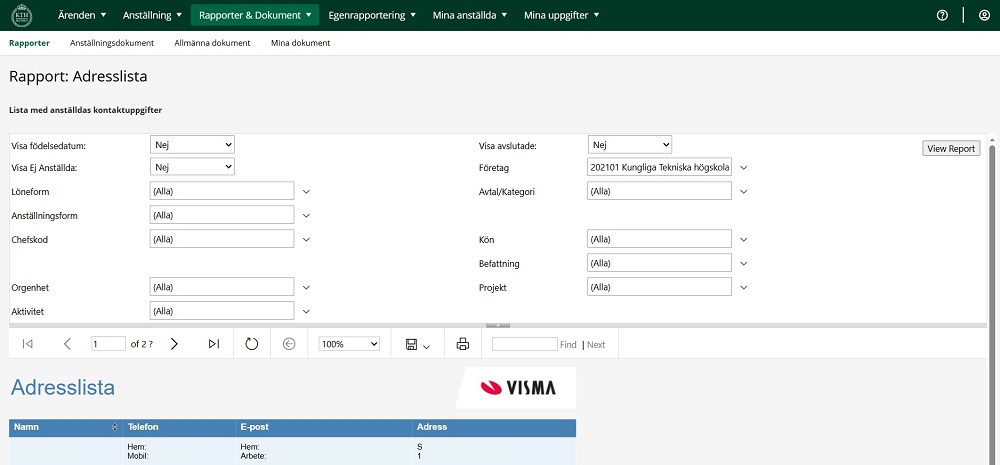 3. Du får nu upp alla dina anställda på en lista, du kan filtrera de ovan om du vill (det är inte nödvändigt), om du filtrerar klicka på “View report”.