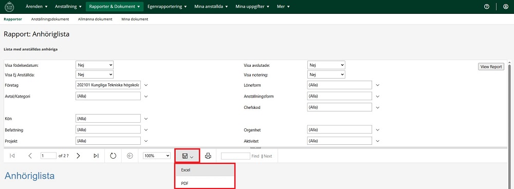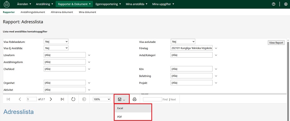 4. Du kan spara ner filen både som pdf och som excelark. Om du sparar ner filen, spara med försiktighet och enbart för eget bruk.