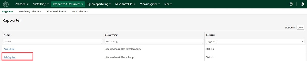 2. Klicka på “Anhöriglista”