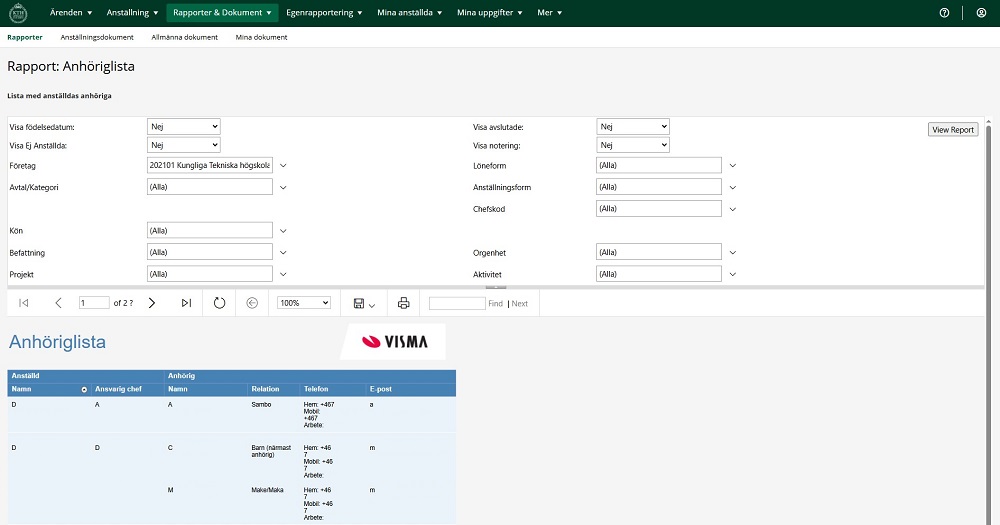 Medarbetares kontaktuppgifter och anhörig