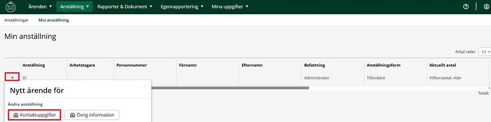 1. Håll muspekaren över “Anställning” och välj "Min anställning".
