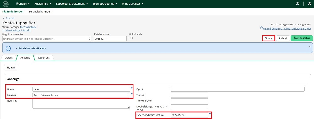 Följ stegen som förklaras här för att lägga till anhörigas uppgifter.