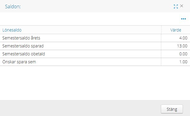 3. När du klickat på "Lönesaldo" ser du ditt aktuella semestersaldo. Du kan även se om du har önskat spara semester, har sparad semester från föregående år samt om du har någon obetald semester.