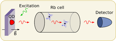 We combine single quantum dots and warm rubidium vapors. This is made possible with high quality quantum dots made of GaAs in a AlGaAs matrix that emit close the transition frequency of rubidium (D2 lines). We have slowed down single photons emitted by a single quantum dot in an atomic vapor. Another possible experiment is the realization of a quantum memory where single photons from a quantum dot could be stored in an atomic ensemble.