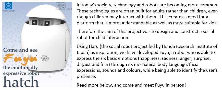 This year's projects include an emotionally expressive hatching robot to comfort children, a remote control rover to support sustainable forestry, a test rig to improve the automated milking process for cows, and a testing platform that brings autonomous driving on KTH Campus a step closer to reality.