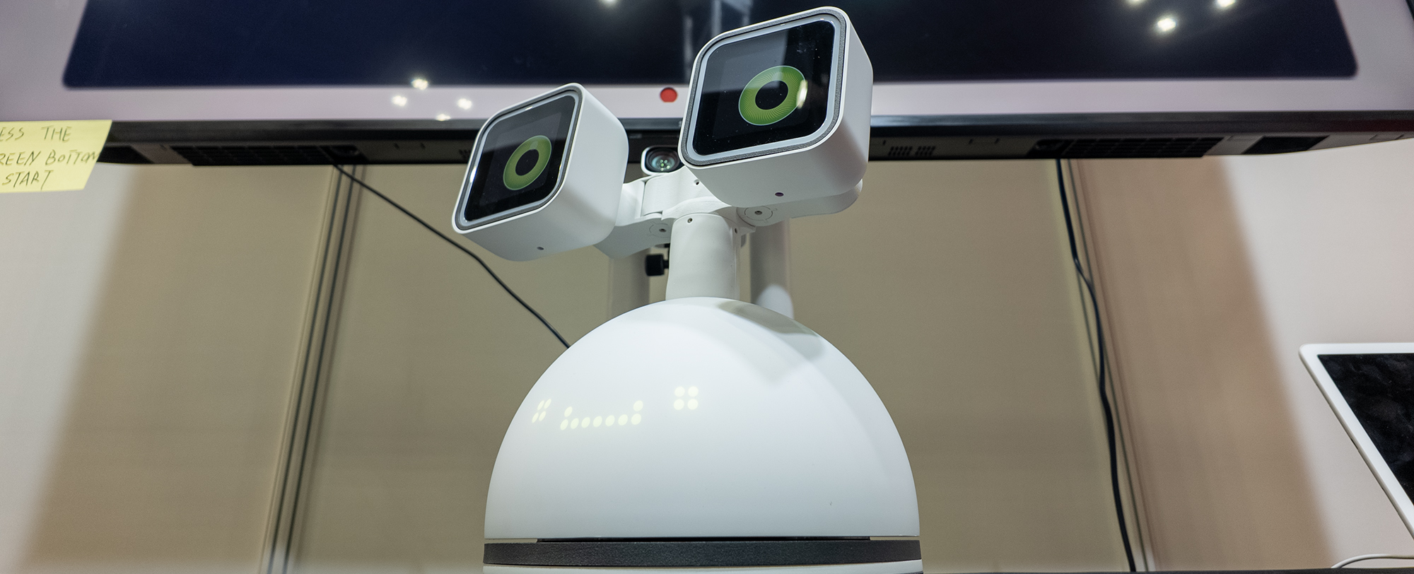 A new version of the tabletop robot was demonstrated to 5,000 participants, featuring the soft robotic neck designed and developed at the Robot Design Lab.