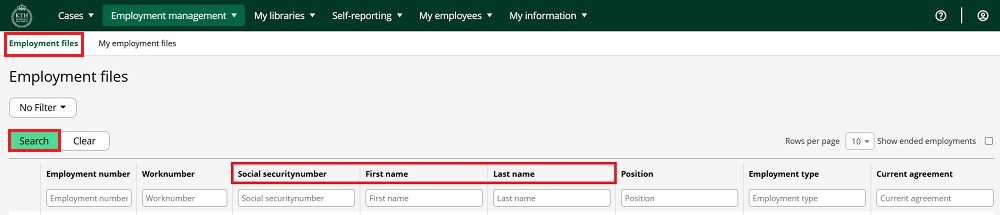 1. Hoover the mouse over “Employment management” and click on "Employment files"