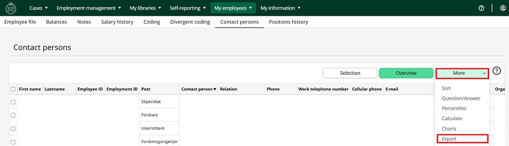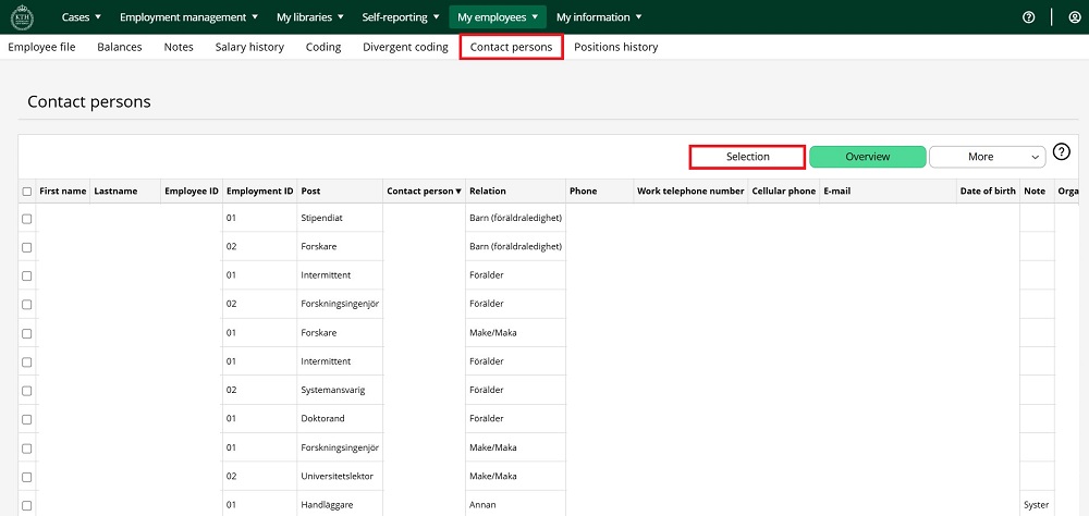 2. Click on “Contact persons”, and all your employees along with their emergency contacts will appear. If you wish, you can also apply a selection