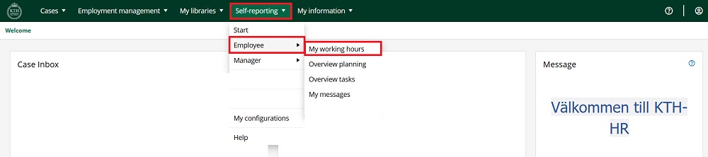 2. Hover the mouse over “Self-reporting”, “Employee”, and click on “My Working Hours”