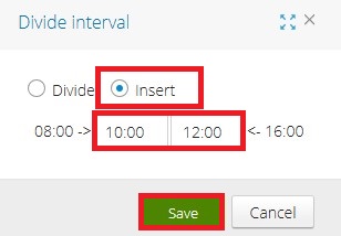 6. If the time falls in the middle of the on-call duty, choose “Insert” and then enter the time range during which you worked, and click “Save”