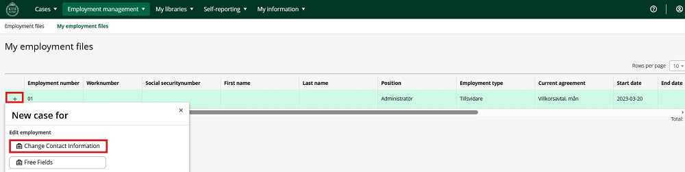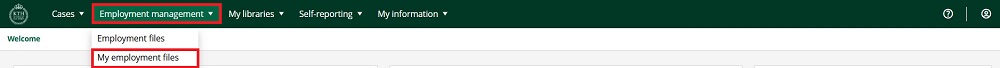 1. Hoover the mouse over "Employment management" and click on "My Employment files"
