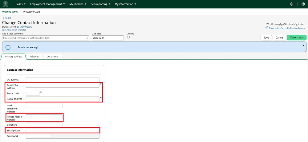 Here you can find instructions on how to register your personal information such as contact details, emergency contacts and children's birth dates in KTH-HR.